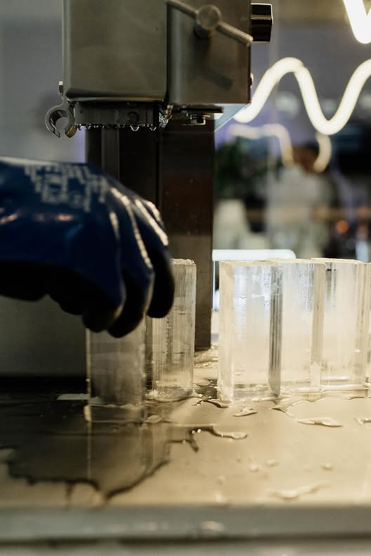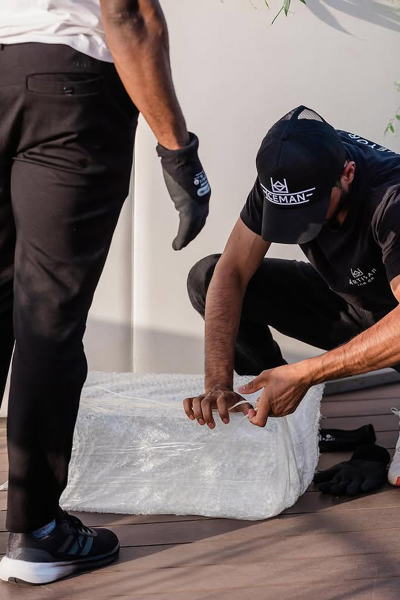 Our team meticulously handcraft each ice block, using precision tools to create perfect, crystal-clear cuts.